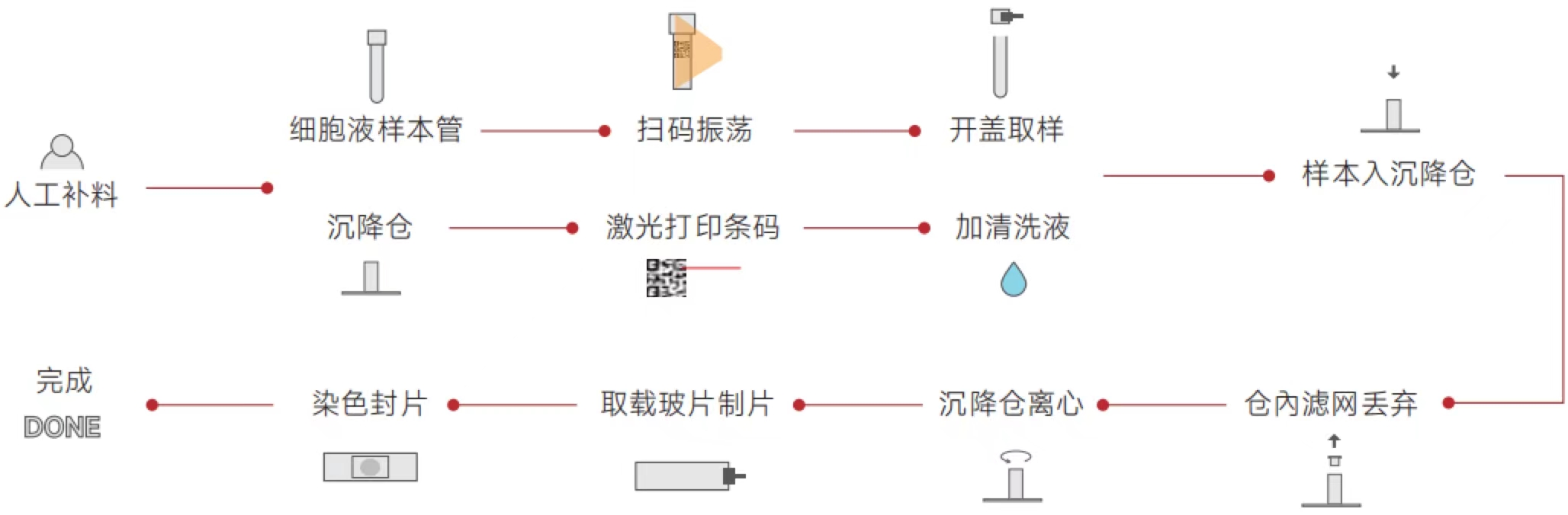 | 实验耗材 | 细胞保存液(样本管)、沉降仓、盖玻片、一次性吸头等 |